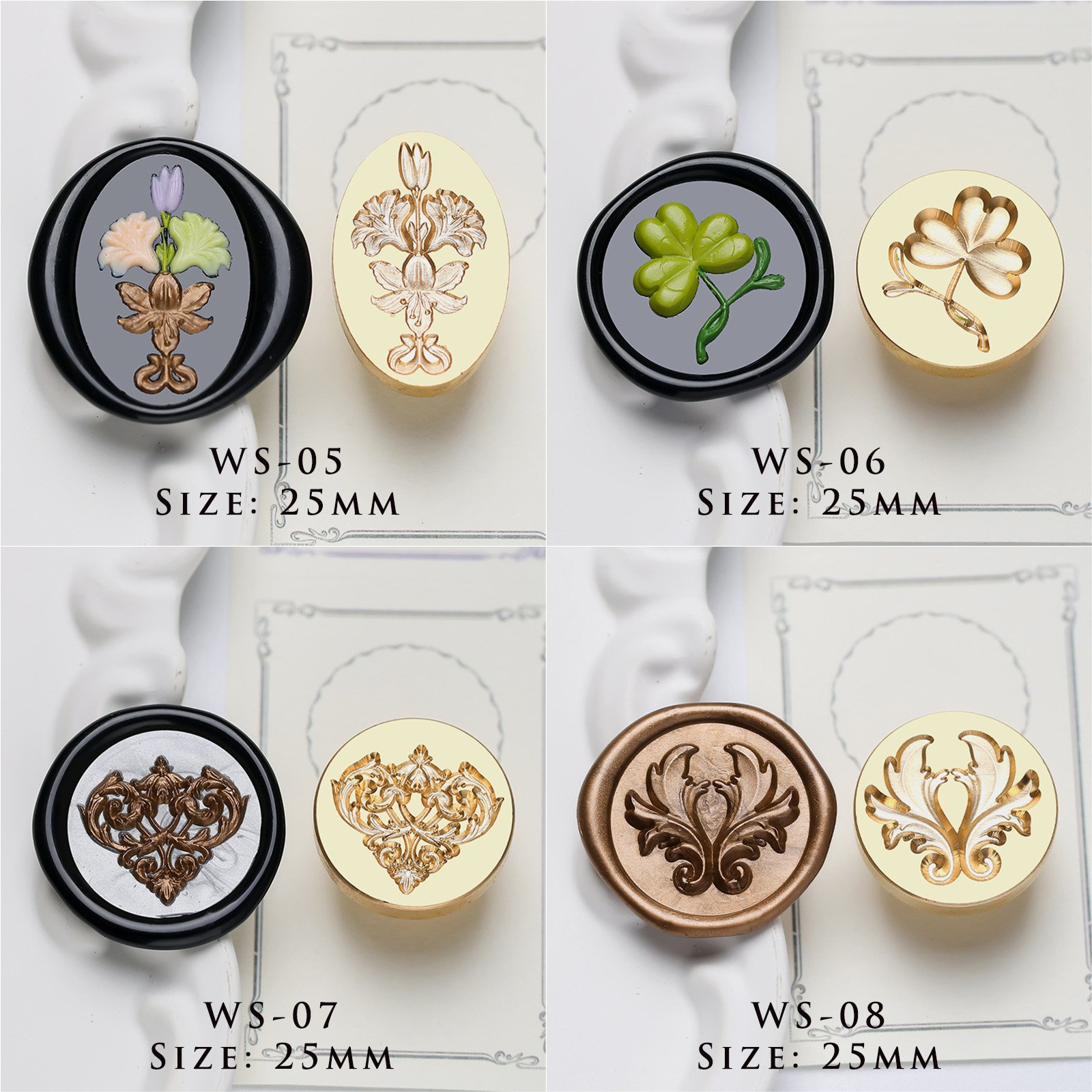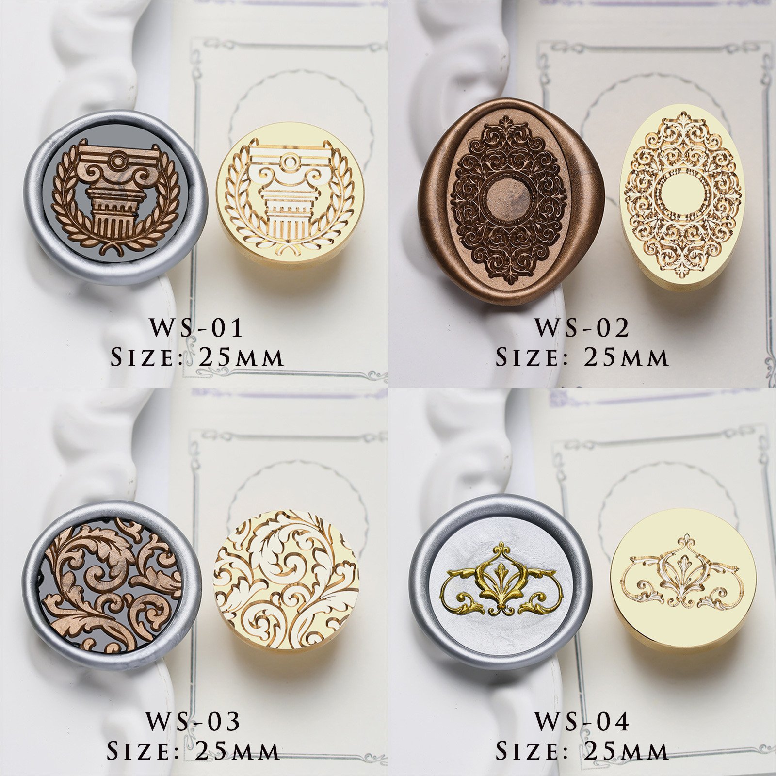 Meticulously rendered through high-precision CNC engraving on heavy-duty solid brass, every fluted column and delicate petal is etched with museum-quality detail. The substantial weight of the brass head provides a confident, grounded feel that ensures a perfect impression every time. When coupled with our premium sealing wax beads, the resulting aesthetic wax seal displays a crisp, high-relief texture that embodies the pinnacle of luxury crafting supplies.